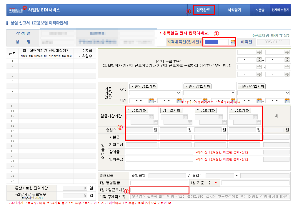 3️⃣ 고용보험 이직확인서 작성