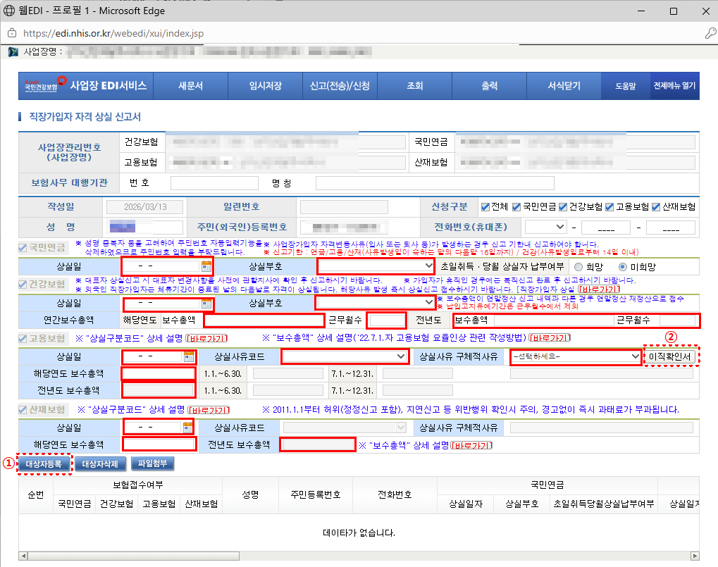특히 실무에서 가장 많이 처리하는 업무가 바로 건강보험 EDI 상실신고와 고용보험 이직확인서 작성입니다.
