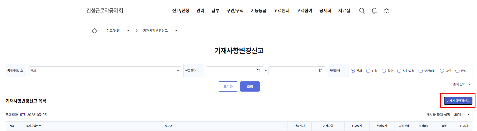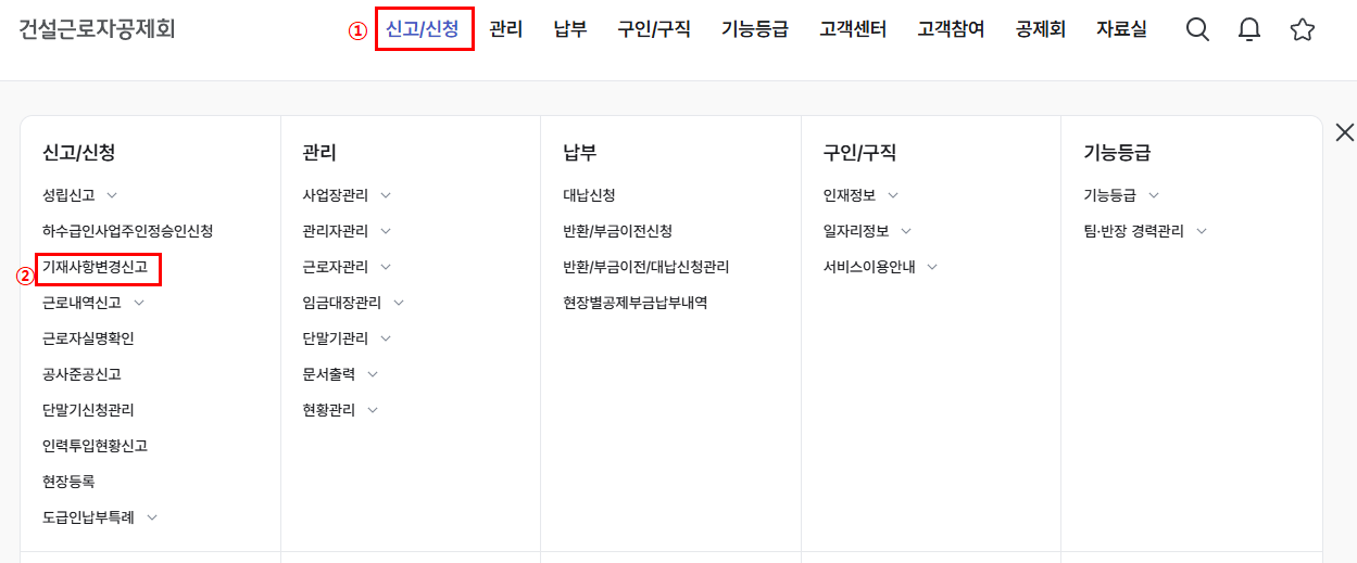 건설e음 접속 및 건설근로자공제회 퇴직공제 사업장정보변경 신고 절차