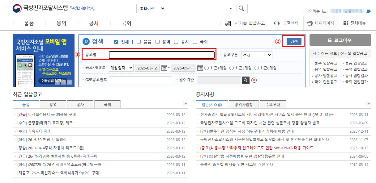 국방전자조달시스템 바로가기