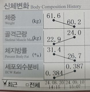 부끄럽지만 체중은 61.6kg -> 60.2kg으로 1.4kg 감소