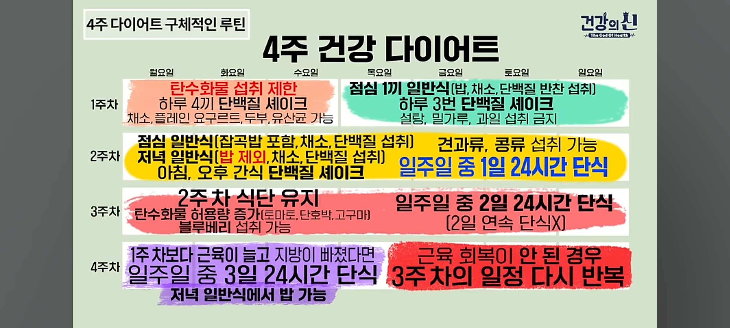지금은 4주차를 진행하고 있는데 4주차에는 3일 단식이 있어요~