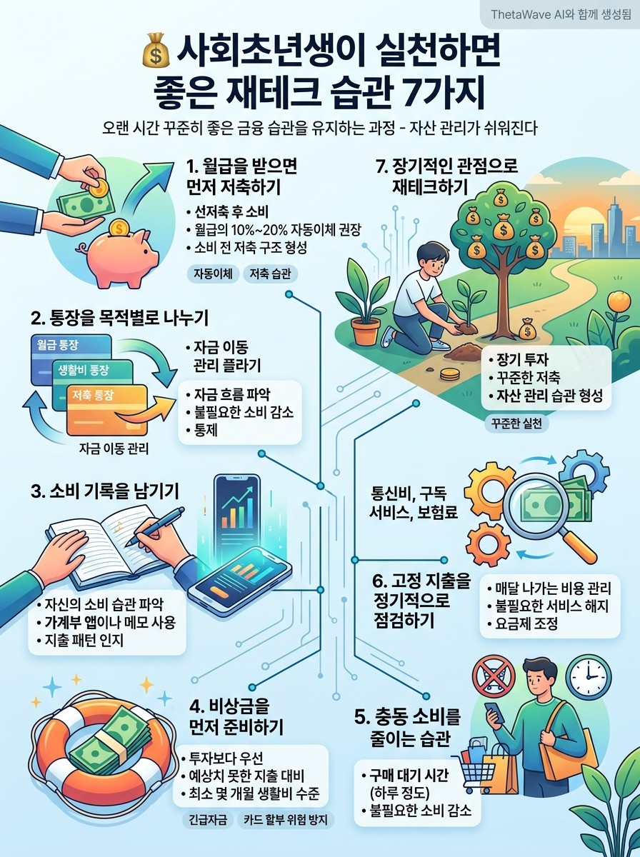 지금부터 사회초년생이 실천하면 좋은 재테크 습관 7가지를 살펴보겠습니다.