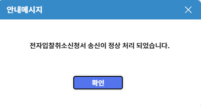 확인을 누르면 다음과 같은 화면이 나오는데 전자입찰취소가 신청 -> 결과로 빠뀌어 있으면 끝입니다.