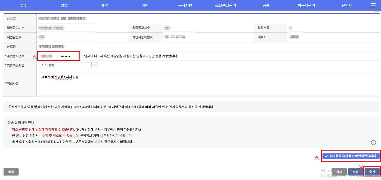 입찰취소를 진행할 때는 몇 가지 중요한 사항을 반드시 확인해야 합니다.